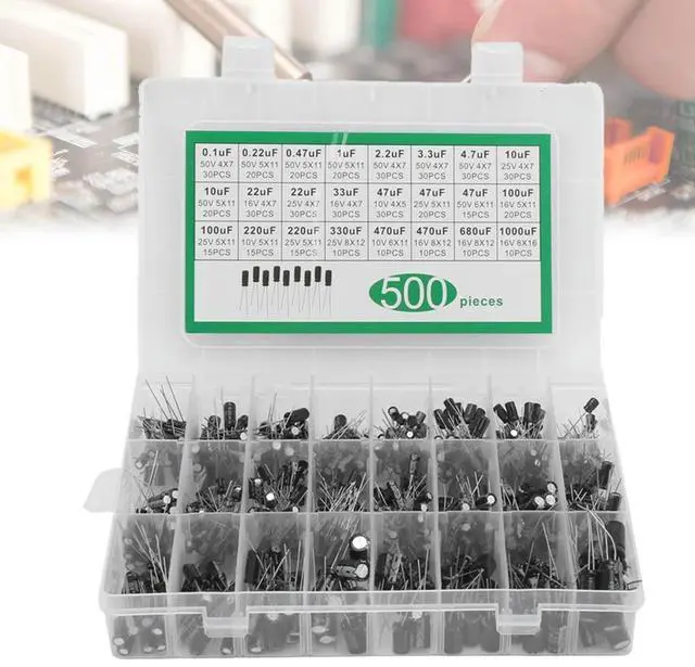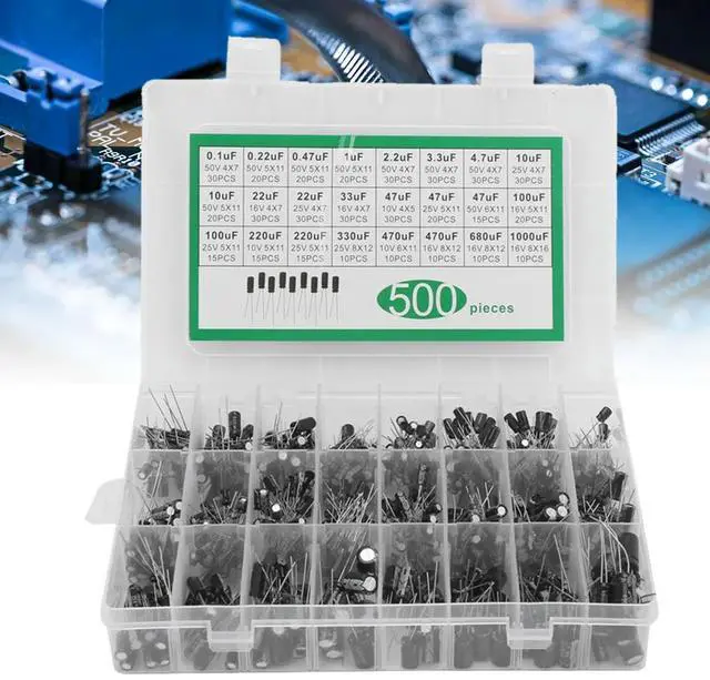 • 500Pcs 24Values 16-50V 0.1-1000uF Aluminum Electrolytic Capacitor Assorted Assortment Kit Electrolytic Capacitor Assortment Kit