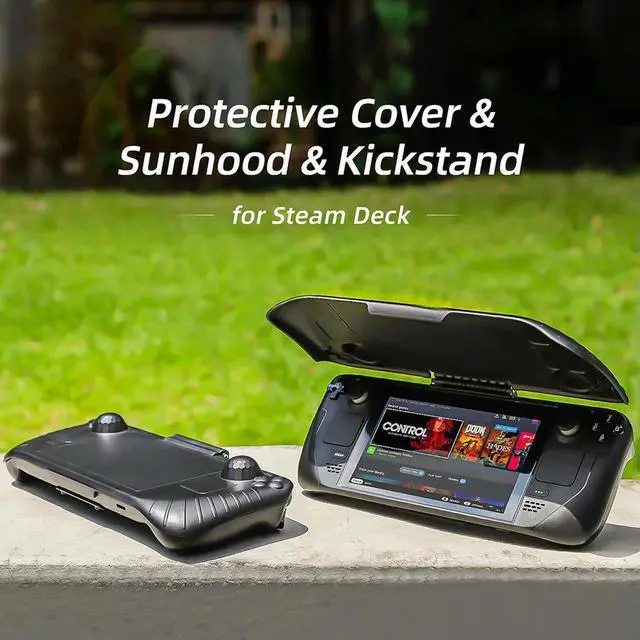 • Console Protective Cover with Support Stand Non-Slip Sun Shield Cover Shock-Absorption Cooling Rear Housing Cover for Steam Deck