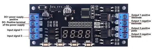 • MOS LED Digital Time Delay Relay Trigger DC 12V 24V Dual Way High Power Switch Circuit Board Timing Control Module
