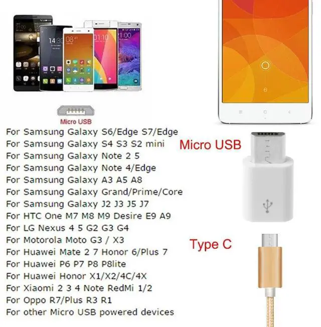 White USB 3.1 Type C Female to Micro USB Male Adapter Charger Cable Adapter for for Galaxy