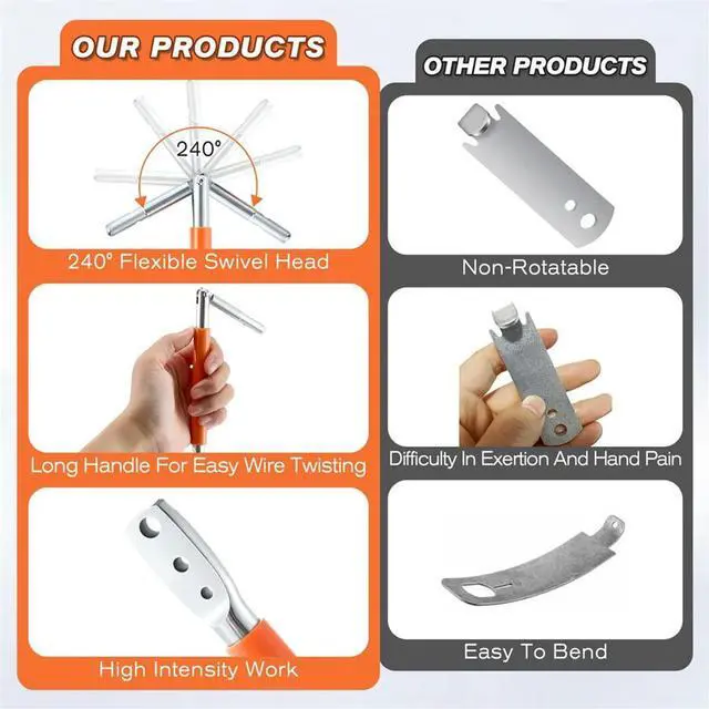 T Post Clips Tool & Wire Twist Tool Dual-Functionality, for Fence Stretcher, Fence Clips and Fence Wire Twisting Tool-Elect
