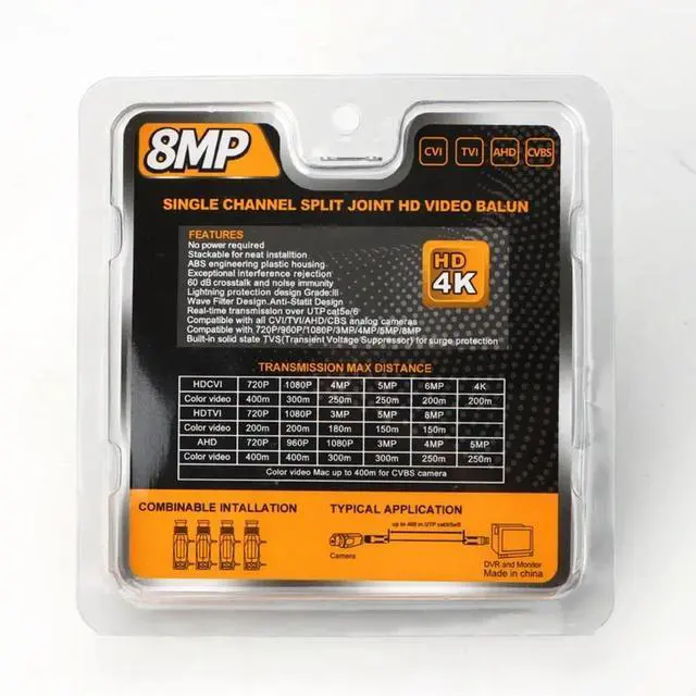 • 1Pairs 8MP BNC Video Balun Connector Transmission Twisted Pair Transmitter Cctv Cable Support HD 8MP AHD/CVI/TVI Camera