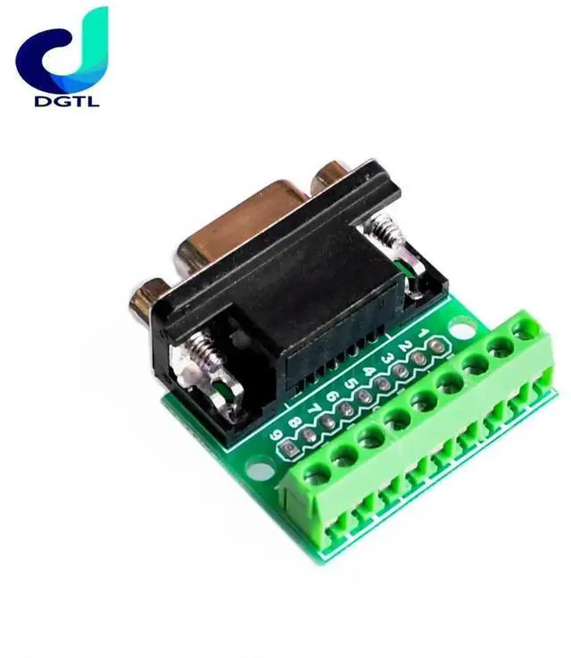DB9 RS232 Serial to Terminal Female Adapter Connector Breakout Board Black+Green