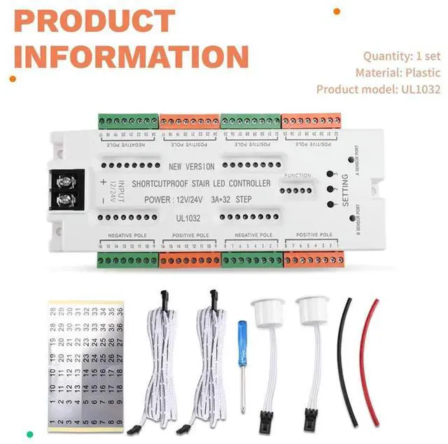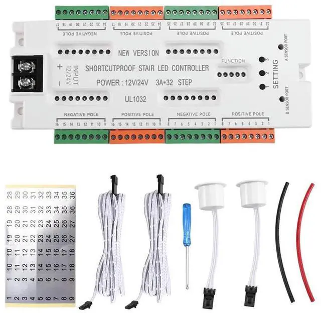 • Ladder Lamp Night Light 32 Channels Stair LED Motion Sensor Light Prevention Of Short Circuit Controller DC12V/24V