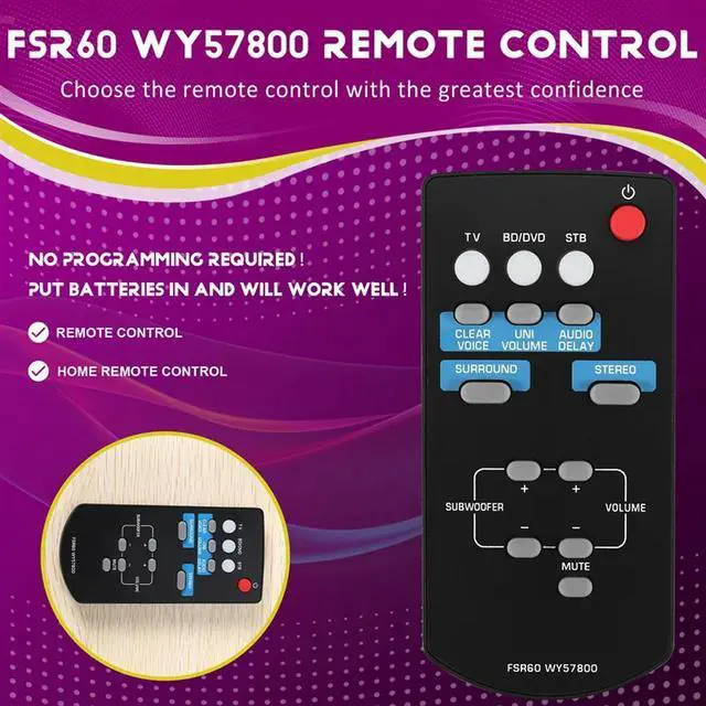 FSR60 WY57800 Replacement Remote Control For Yamaha WY57800 YAS101 YAS101BL