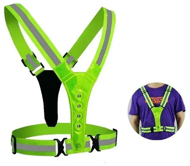 • Elastic V shaped Luminous Reflective Vest LED Light Adjustable Vest Night Running Cycling Sports Safety Vest