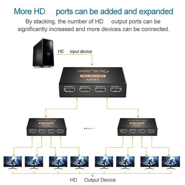 • 4K 2K HDMI-Compatible Splitter With Power Adapter 1 in 4 Out Video Switcher Cable 1x4 For PS4 Projector Laptop Monitor TV Box