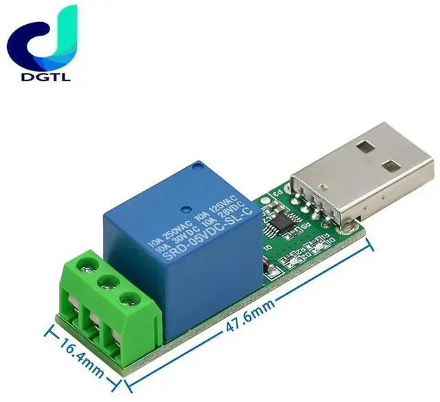 • HID Drive-free USB 1 Channel 5V Relay Module Can Control the Relay On and Off On the Computer Side
