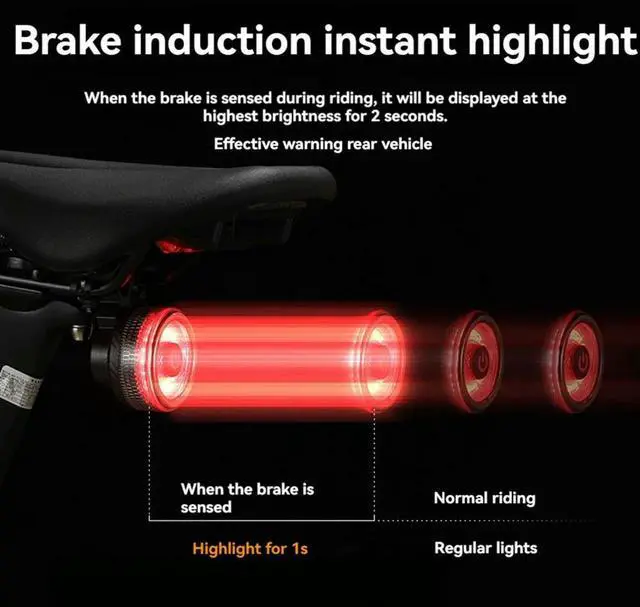 • Bicycle Smart Brake Auto Sensing Light Waterproof LED Type-C Charging Cycling Taillight Bike Rear Light Accessories B Rich