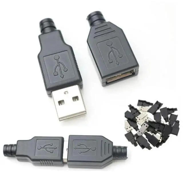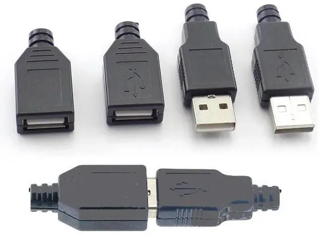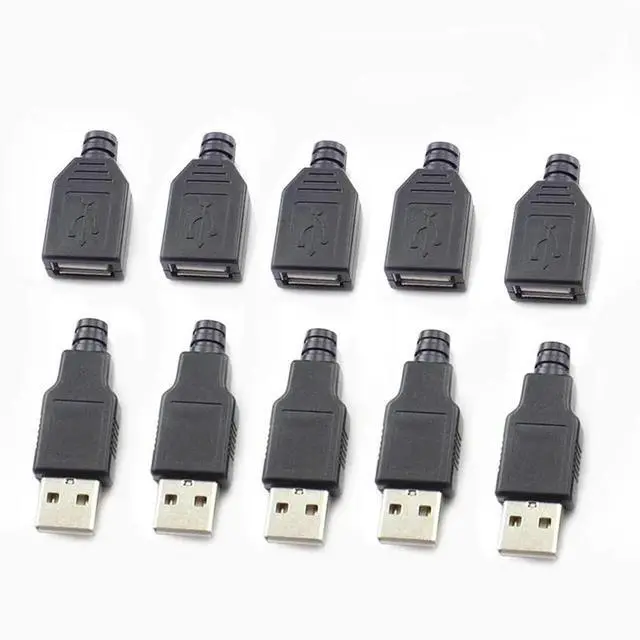 • 5Pair Micro USB Connector Male Female DIY USB 2.0 Type A Connectors Charging Socket Micro USB Plug Tail Black Plastic Cover