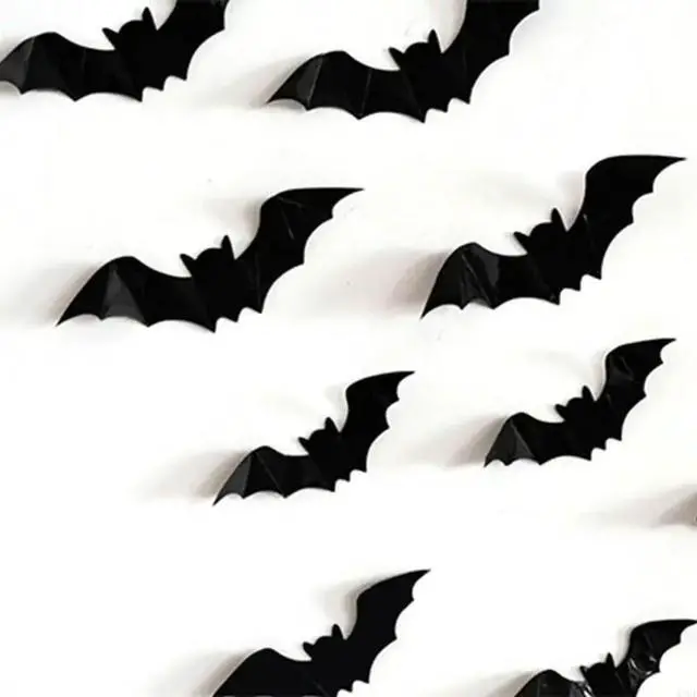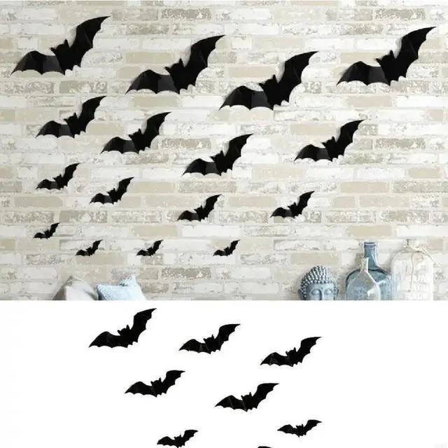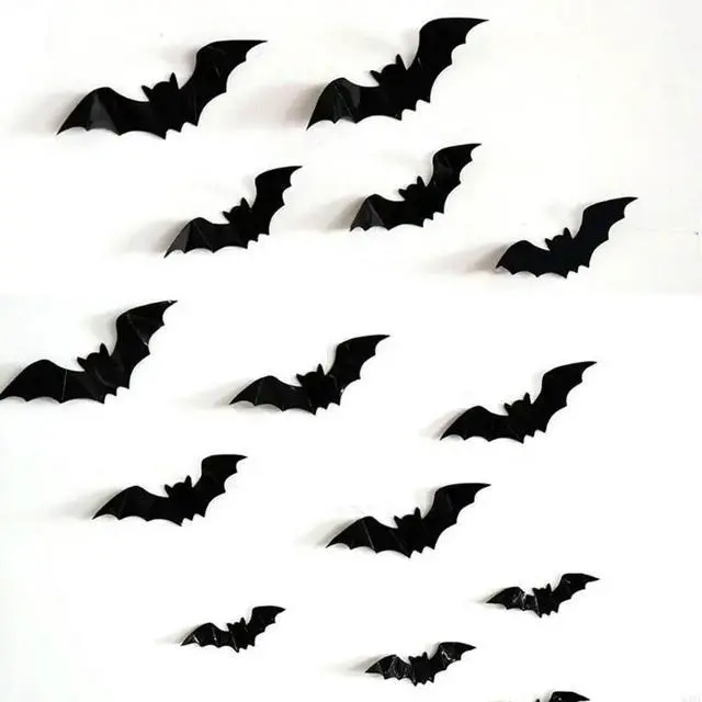 • 16 Pcs Black Scary Bats Stickers Halloween Decorations Wall Decal for Door Wall