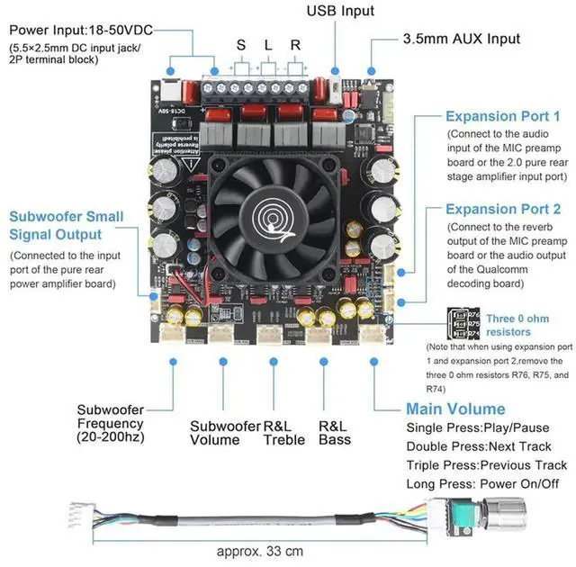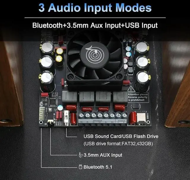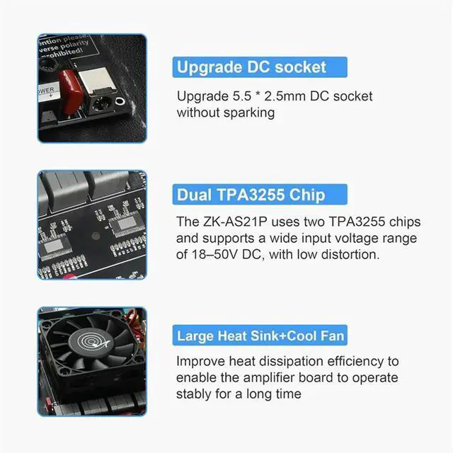 • ZK-AS21P Bluetooth Amplifier Board - 300W+300W+600W Output, 18-50V DC Wide Voltage Input, Vehicle Amplifier