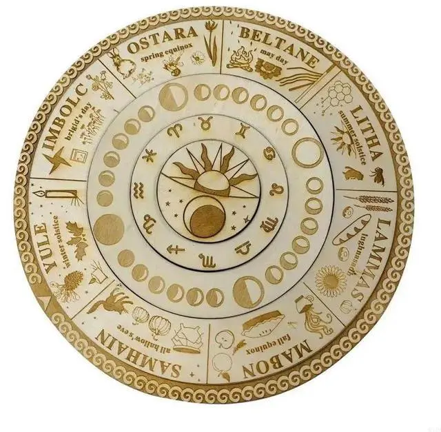 • Pagan Wheel of the Year Calendar Wiccan Neo-Pagan Sabbats Moon Phases Astrological Zodiac for Home Office Desk Decor