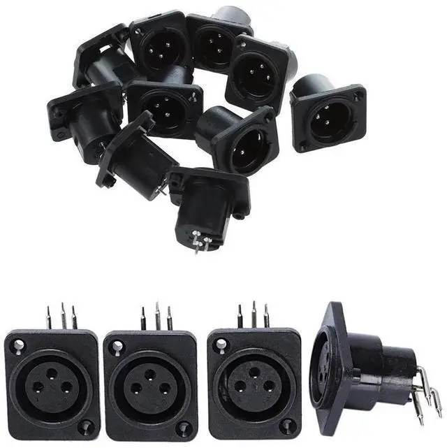 • 20 Pcs Black XLR Connector: 10 Pcs Male Plug Straight Terminal Panel Mounted Connector & 10 Pcs 3 Pin Female Jack