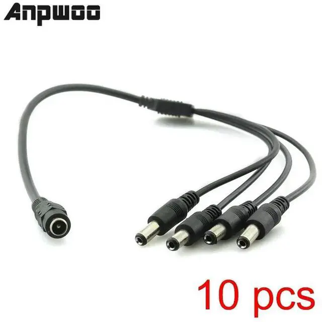 10x DC Power 5.5x2.1mm 1 Female to 4 Male Plug Cable Splitter Security Adapter