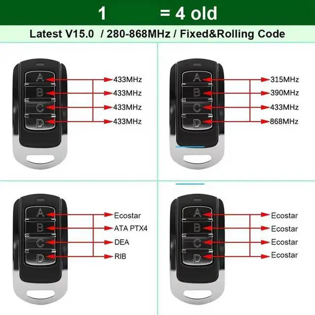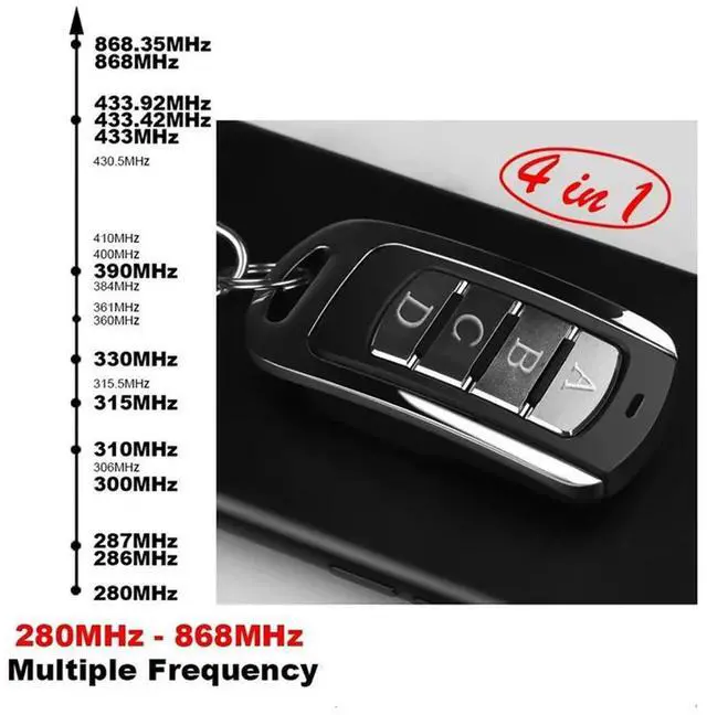 • Duplicator Clone Universal Garage Door Remote Control Multifrequency 280-868Mhz Gate Door Opener Keyfob Transmitter Sliver