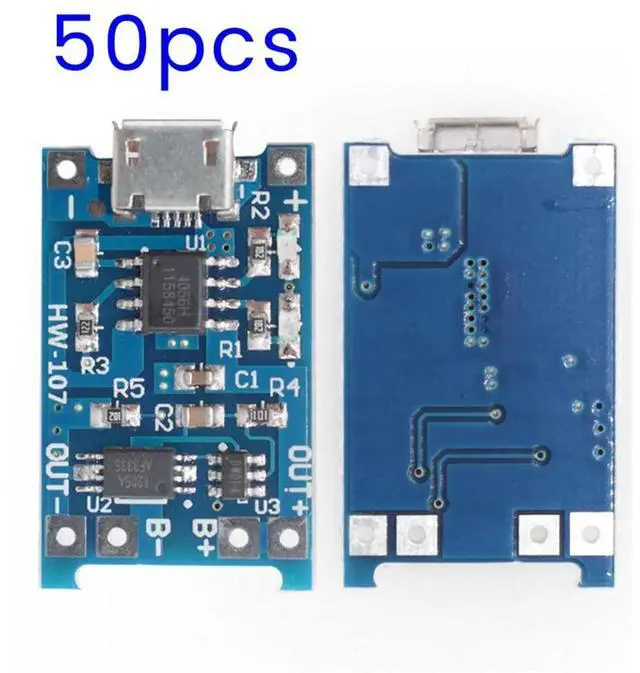 • 50 PCS TP4056 Micro-USB Lithium Charging Board 5V 1A Charger Module Blue PCB
