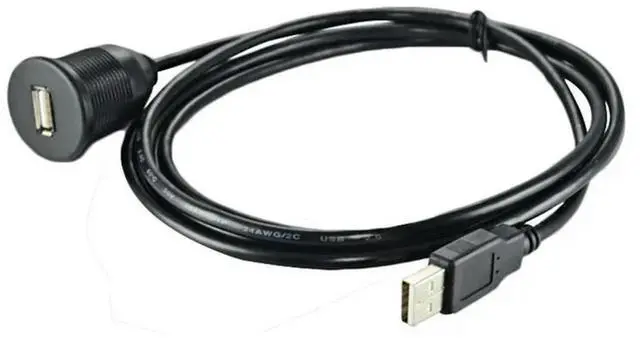 • Waterproof USB2.0 Male To Female Extension Cable, 2 Meters with Bracket for Motorcycle Wheel, Boat, Car Dashboard Audio