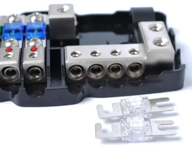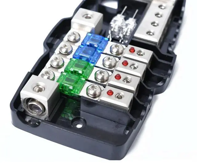 • Vehicle Fuse Multifunctional Fuse Block With LED Light (4-Way Fuse 30A / 60A+2 In 4 Out Distribution+2 Spare Fuses 80A)
