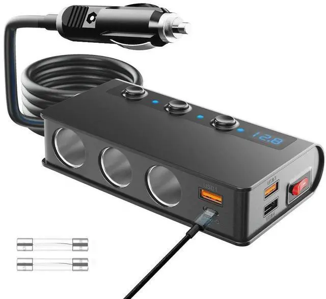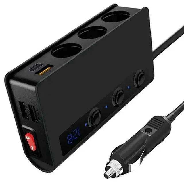 • 3 - Socket 12V/24V 180W ON - OFF DC Power Car Splitter with 4 - Port USB Car Charger, Quick Charge 3.0 Cigarette Lighter Splitte
