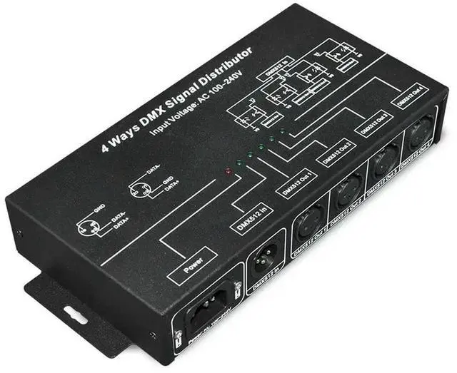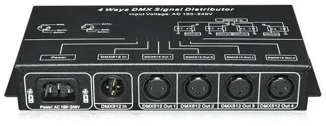 • 4 Output Ports DMX Signal Amplifier Repeater DMX Splitter 512 AC 100 - 240V DMX Controller