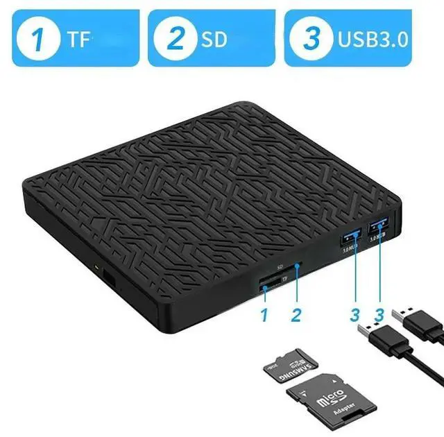 • Slim External USB 3.0 Optical Drive High-Speed Reading Support TF Reader Player For DVD-ROM CD-RW Burner Laptop Macbook PC