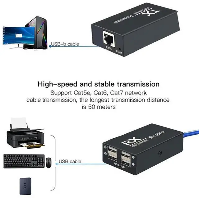 • 120M USB Extender 4 Port USB1.1 Hub Extender over RJ45 Ethernet USB UTP Extension Transmitter Receiver-US Plug