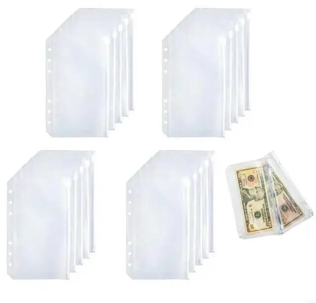 • 20Pcs Binder Pockets Clear Zippered Folder for 6-Holes Binder, Budget Planner