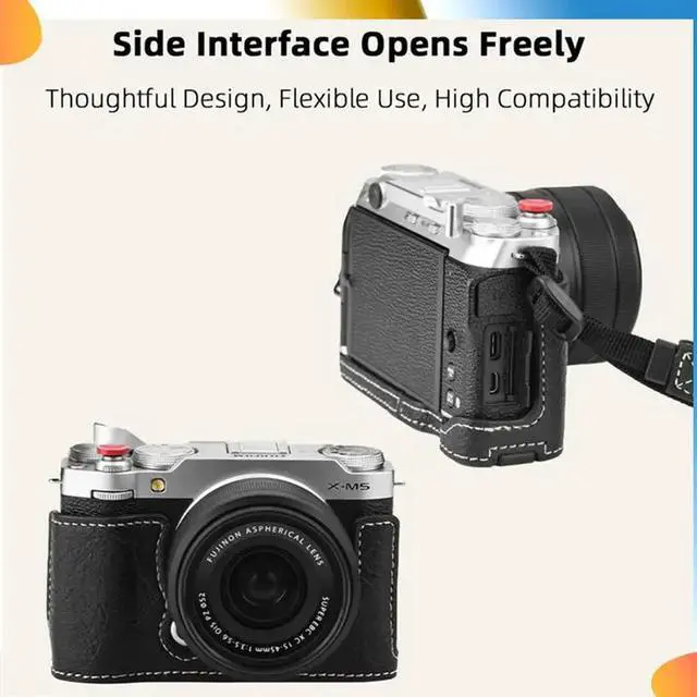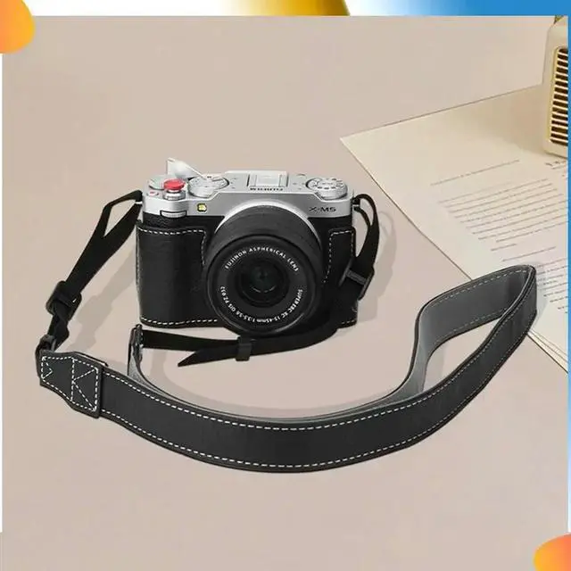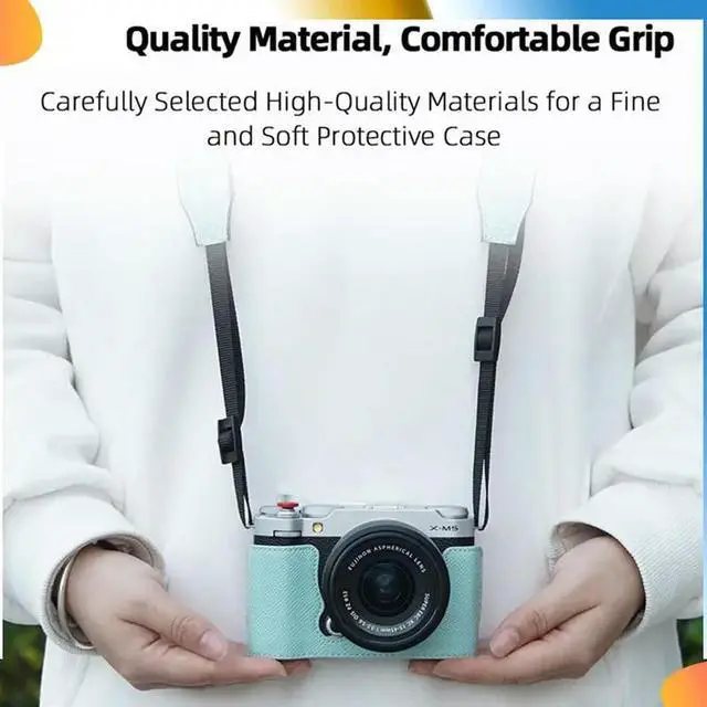 • For Fuji X-M5 Camera Protective Leather Case Camera Lanyard Camera Bag Shoulder Strap Blue