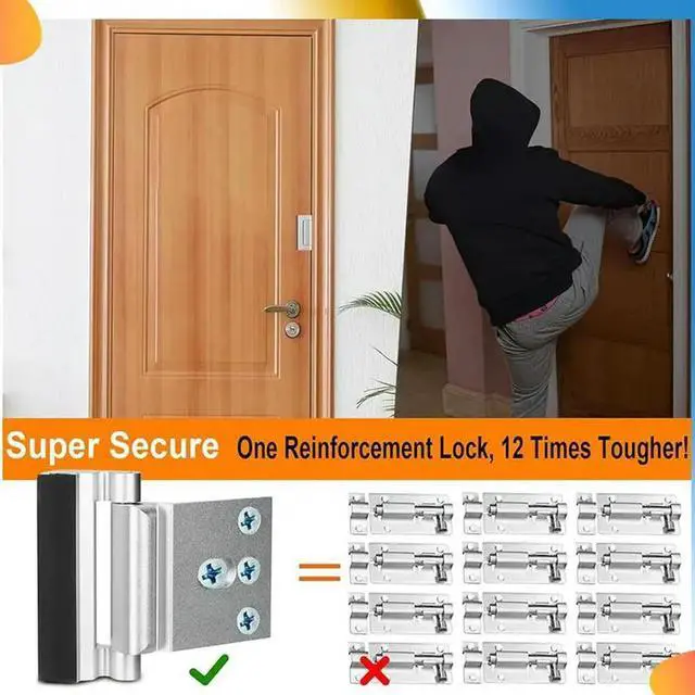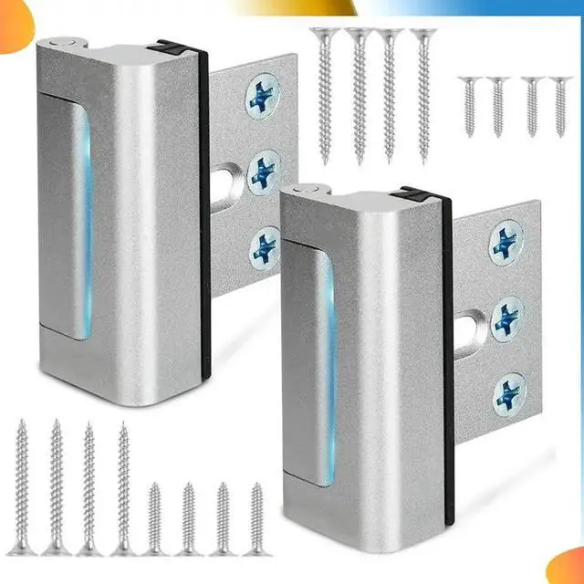 • 2Pack Home Security Door Reinforcement Lock Security Door Locks Home Prevent Unauthorized Entry Forkids Safety Silver