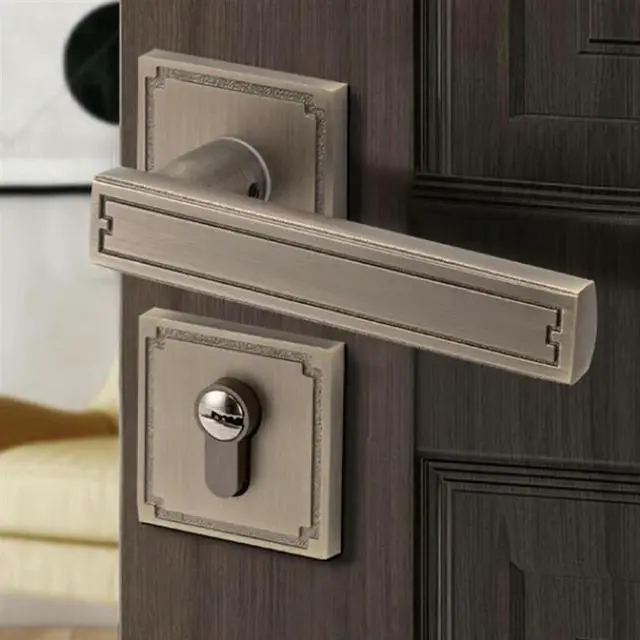 • Chinese Style Door Lock, Wooden Door Handle, Split Silent Interior, Household, Bedroom, Retro Handle Lock