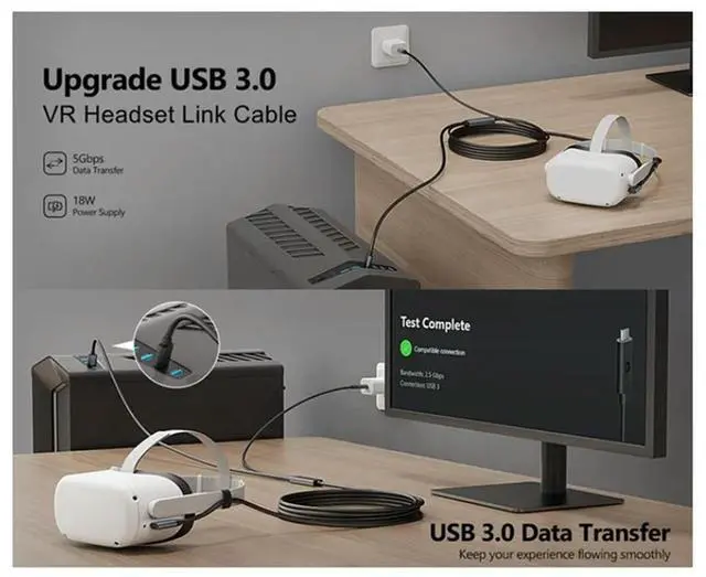 • Data Cable VR Streaming Cable 10GB High-Speed Transmission Elbow Device Fast Charging Type-C 5M