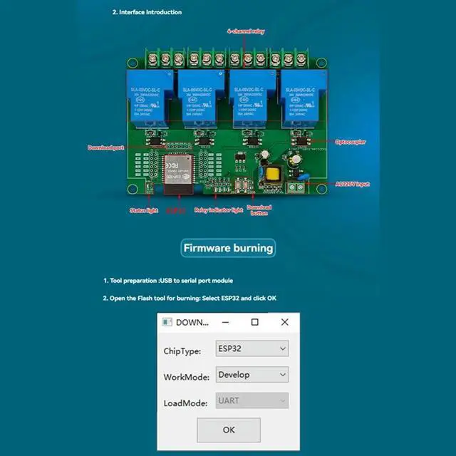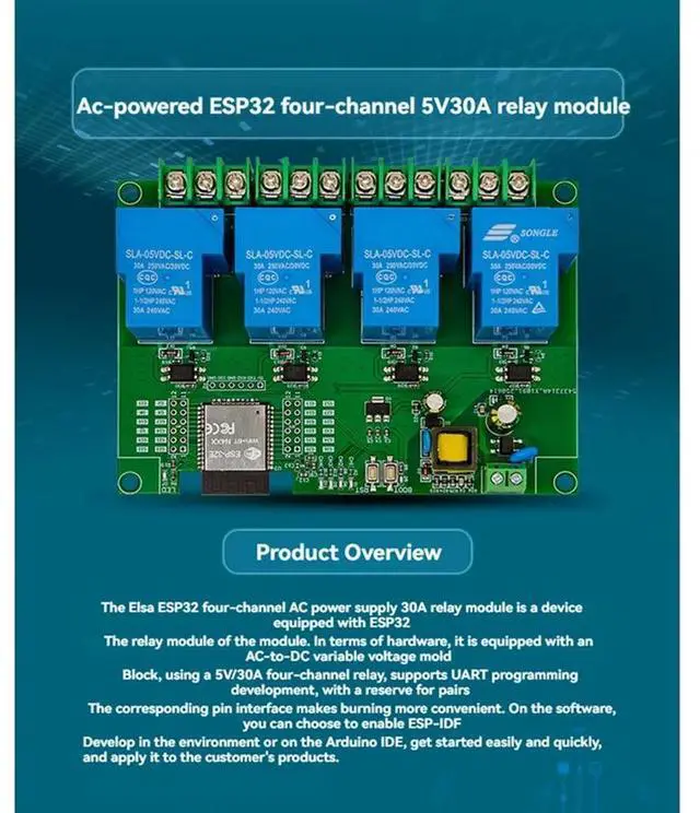 • ESP32 Development Board 4 Channel Relay Module 5V/30A AC220V Bluetooth Connectivity