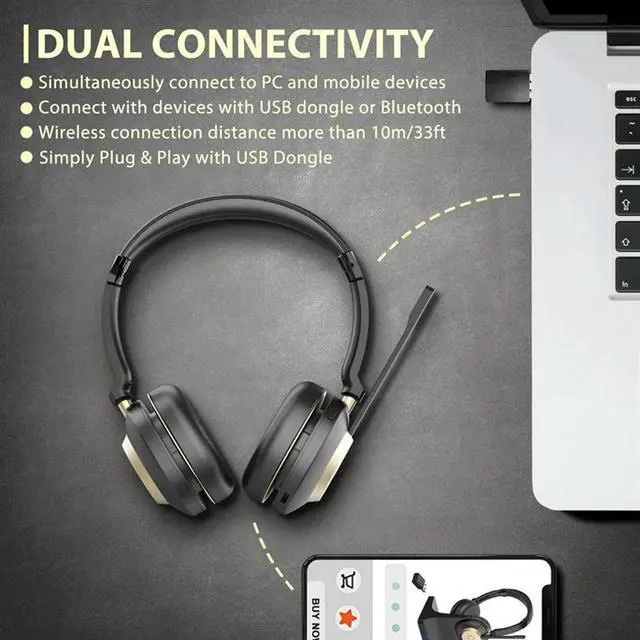 Black Gold Double-Sided Head Mount Replacement Microphone Pole Noise-Cancelling Bluetooth Wireless Communication BT882