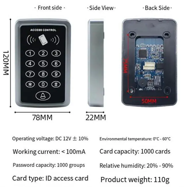 • RFID Keypad Keyboard Access Control System Waterproof Cover Outdoor EM4100 TK4100 Keyfobs Door Opener for Lock System