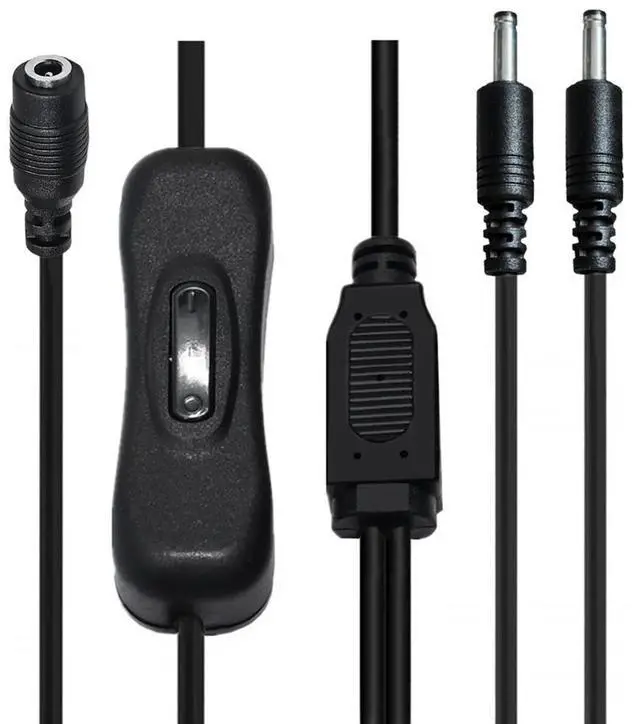 • DC Y Splitter Power Cable with Switch 3.5mm x 1.35mm Female to 2 Dual Male w/ On/Off 304 Switch for CCTV Camera LED Light Strip
