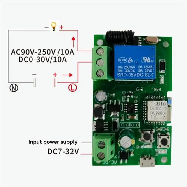 • Wireless Relay Module RF Remote Voice Control Single-Channel Inching Self-Locking Switch