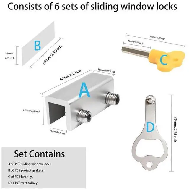 • Window Lock (6 Sets) Safety Window Lock, For Vertical And Horizontal Sliding Window And Sliding Doors, Adjustable Lock