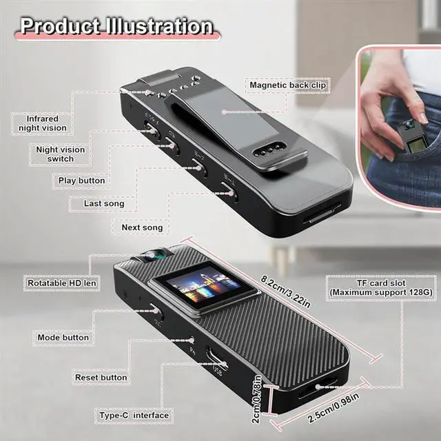 • 1080P Video Recorder Camera Small Security Camera With Night Vision Portable Mini Body Camera For Law Sports Delivery