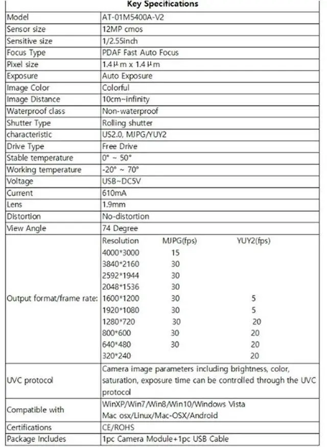 • 4K 12MP IMX362 Cmos USB2.0 Camera Module IMX362 Camera Module 4K 12MP Camera Module