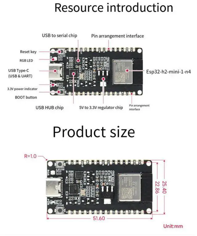 • ESP32-H2 Development Board ESP32 H2 DEV KIT N4 M Module 4MB Flash Support BLE/Zigbee/Thread Wireless Communication, Easy Install