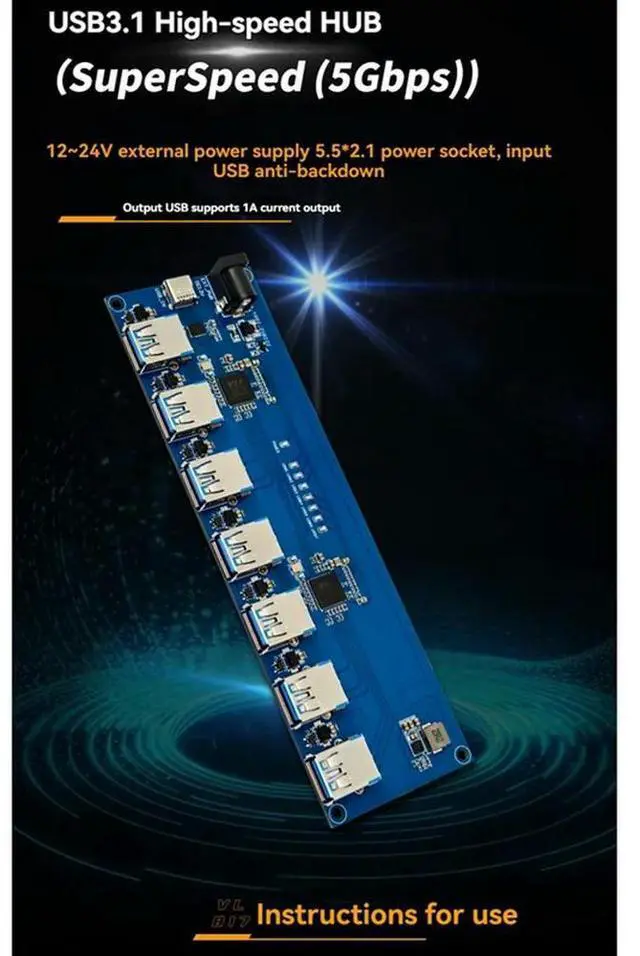 VL817 USB 3.1 HUB Module 1-To-7 Port USB HUB Expansion Module Withcurrent Backflow Prevention Function