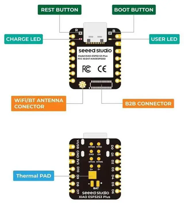 Seeed Studio XIAO ESP32S3 Plus Development Board 2.4Ghz , BLE 5.0, 8MB PSRAM, 16MB FLASH, Esp32-S3 Dual-Core