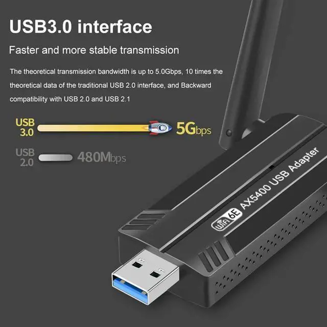 • 6E AX5400 USB Adapter Wireless Card Tri-Band 2.4G/5G/6Ghz 5400Mbps USB 6e Adapter For Win10&Win11