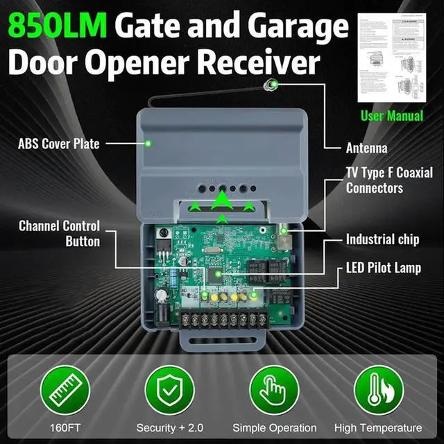 850LM Door And Garage Door Opener Receivers 3-Channel Gated Communities Building Design