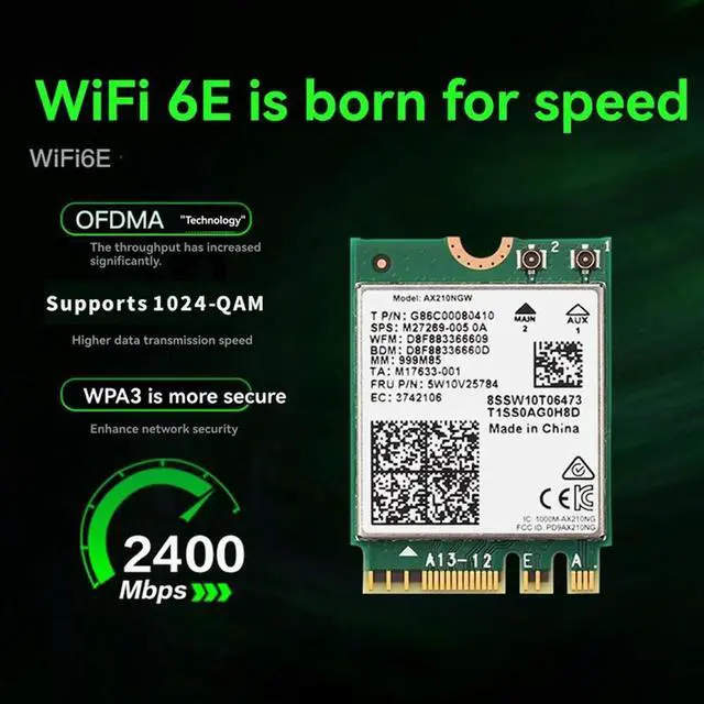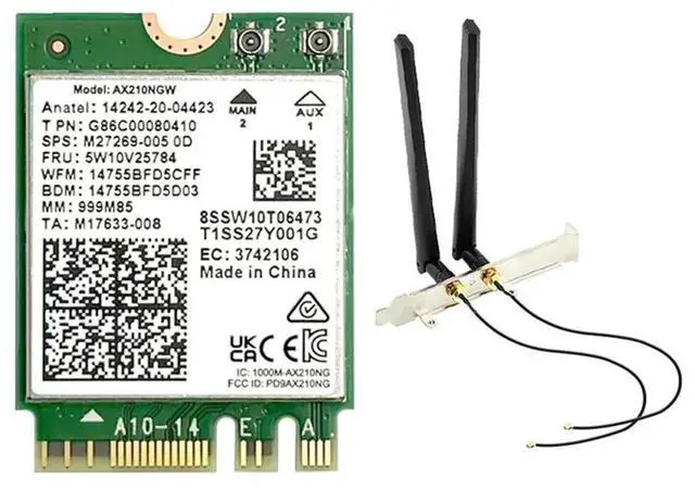 • AX210NGW 6E Card+Antenna 2.4G/5G/6Ghz Tri-Band Bluetooth 5.3 Adapter 5374Mbps Laptop Wireless Network Card