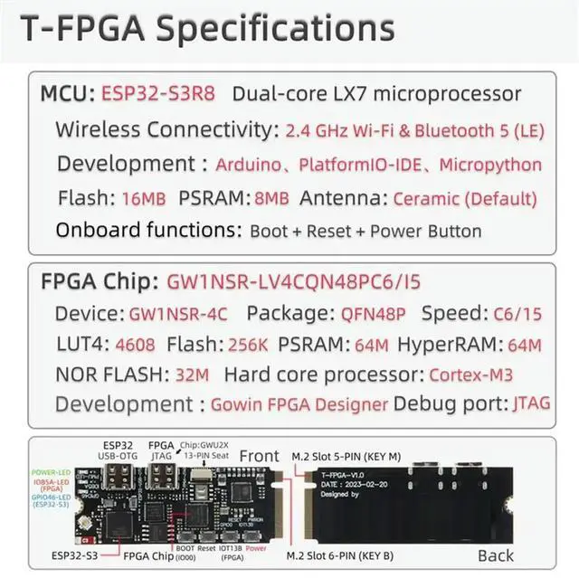 • T-FPGA ESP32-S3 Development Board GW1NSR-LV4CQN48PC6/I5 Low-Power Microcontrollers ESP32-S3 Development Board