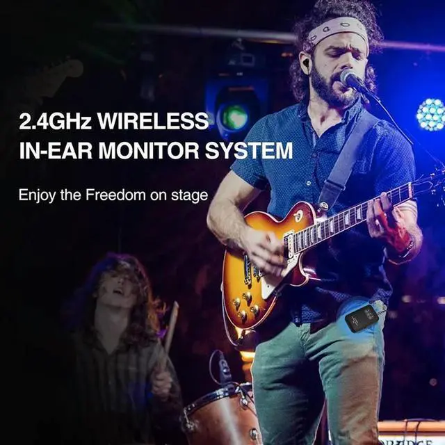 • Wireless In-Ear Monitoring System Stage Playback 2.4G Headphones Rechargeable Transmitter, Receiver Support Stereo Mono