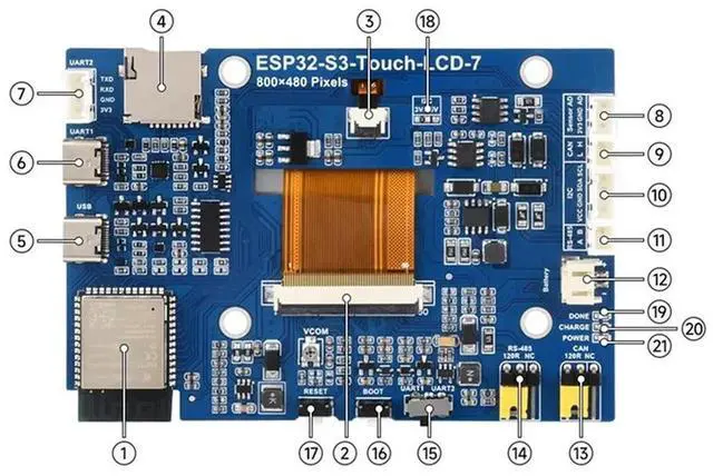 • ESP32 S3 No Touch LCD 7 Inch Capacitive Display Screen 800X 480 Development Board Xtensa LX7 BT5 CAN RS485 Sensor