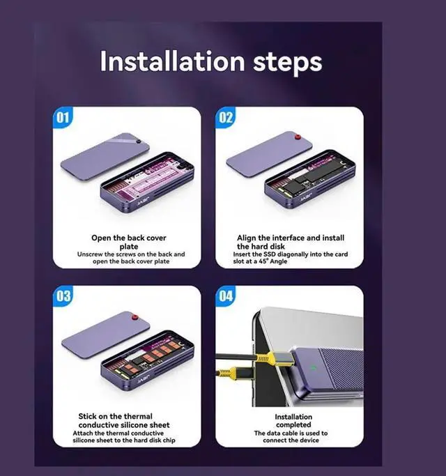 • YOC-JEYI External Drive Box USB 3.2 Gen 20Gbps Type-C For Pro/Air Laptop Hard Drive SSD Enclosure Case